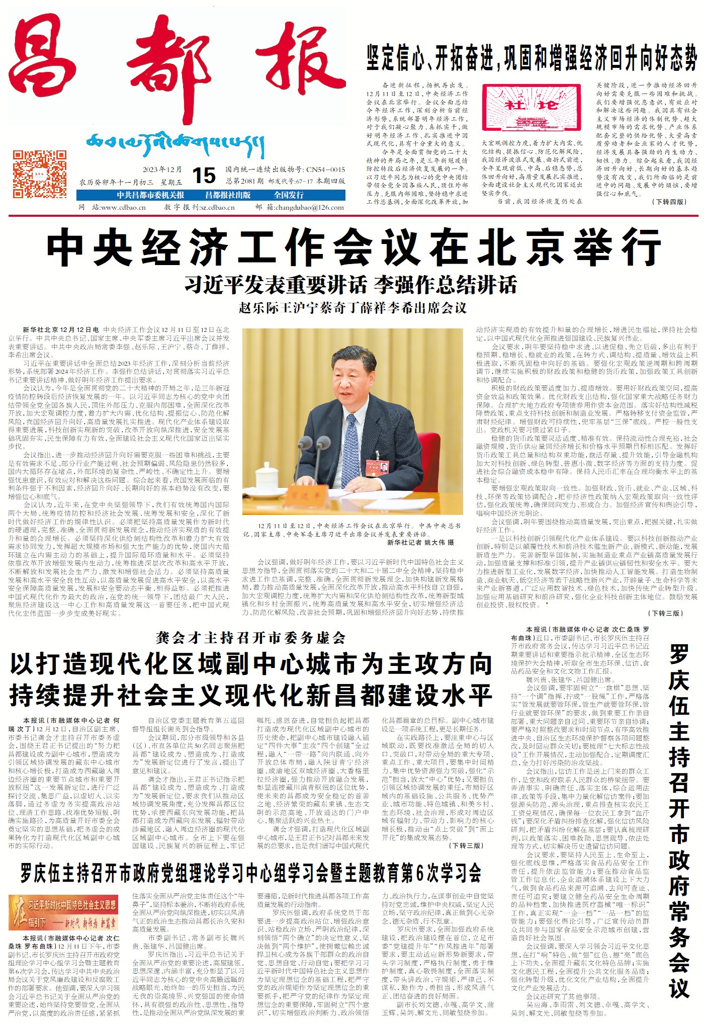 “全面建設(shè)社會主義現(xiàn)代化國家邁出堅(jiān)實(shí)步伐”,中央經(jīng)濟(jì)工作會議12月11日至12日在北京舉行,習(xí)近平總書記出席會議并發(fā)表重要講話,全面總結(jié)2023年經(jīng)濟(jì)工作,深刻分析當(dāng)前經(jīng)濟(jì)形勢,系統(tǒng)部署2024年經(jīng)濟(jì)工作,為做好明年經(jīng)濟(jì)工作,以中國式現(xiàn)代化全面推進(jìn)強(qiáng)國建設(shè)、民族復(fù)興偉業(yè)指明了前進(jìn)方向、提供了根本遵循。